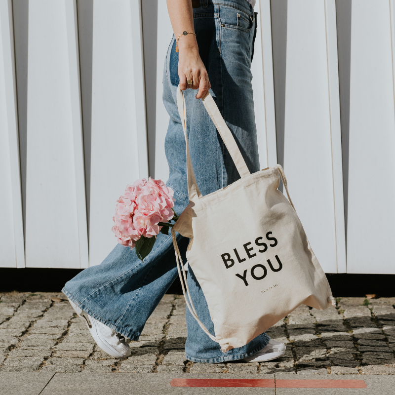 Z drugiej strony znajduje się nadruk BLESS YOU – proste, codzienne przypomnienie, by „dobrze życzyć” każdemu, kogo spotykasz. Wystarczy jedno spojrzenie, by pamiętać, że Twoje słowa, obecność i czyny mają znaczenie.